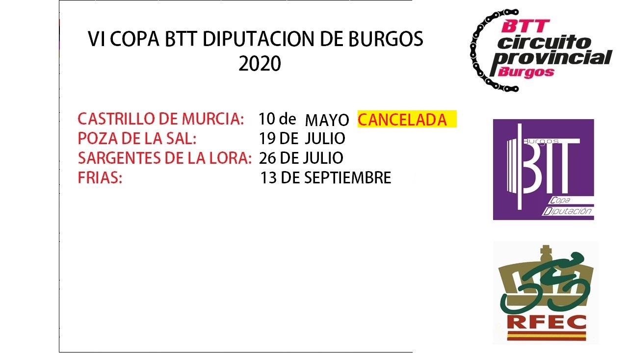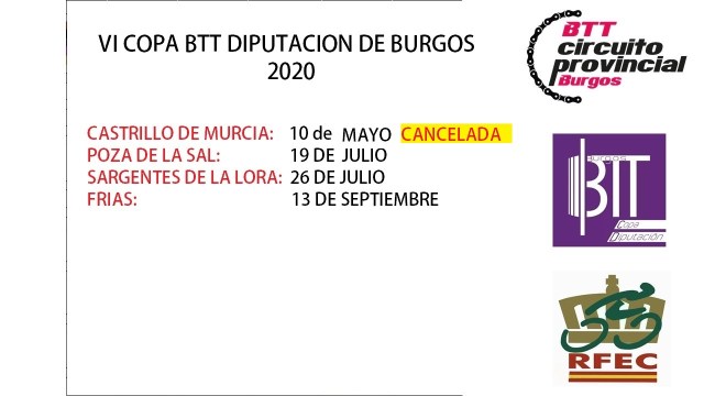 La VI edición de la Copa btt diputación de Burgos, iba a constar de 4 pruebas puntuables: